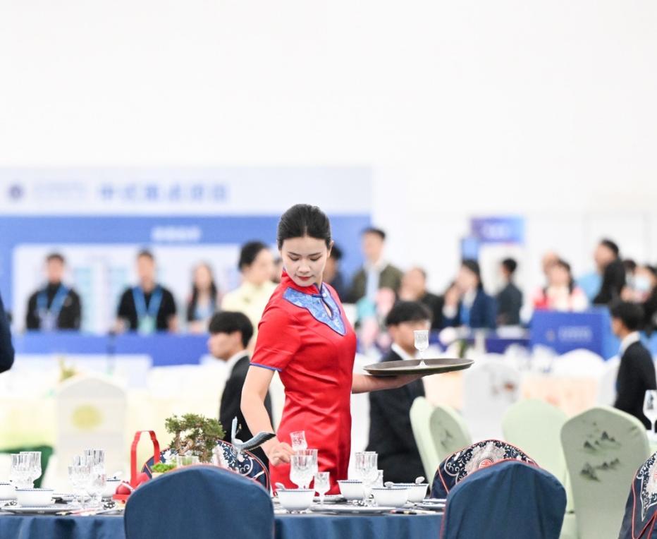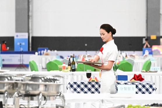 “餐厅服务”赛项内容分主题设计方案及答辩和主题造型、主题宴会摆台、服务技能及餐巾花展台、现场分餐服务及仪容仪表四个模块。主要考察选手的餐饮知识、不同场景的服务规则、服务意识、安全环保操作有关规范等。在激烈的角逐中,学生组选手矣金莉凭借扎实的专业技能和出色的表现,成功斩获餐厅服务项目学生组银奖,为伟德赢得了荣誉。