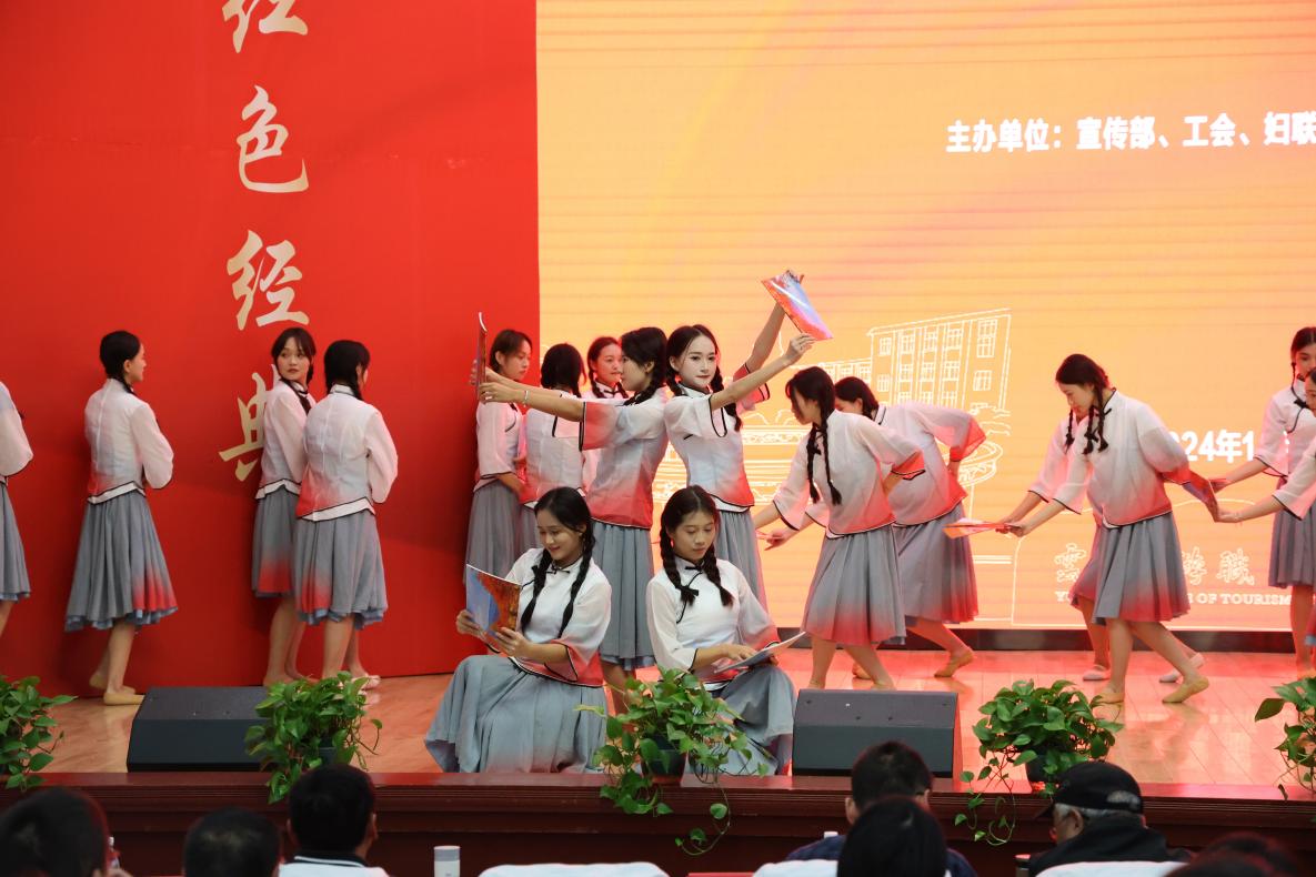 伴随着学生艺术团优美流畅的舞蹈表演《月下待杜鹃不来》,比赛正式拉开帷幕。“家风,从五千年的文明深处走来,带着历史的芬芳家风,如旖旎的春风,自血脉之初浩荡飘浮,绵延至今”,《红色薪火:李大钊的家风传承》《树红色家风·创美好未来》《这盛世,如你所愿》《邓小平的家风故事》《家风颂》《弘扬传统美德·厚植家国情怀》《觉醒年代·青春说》《如兰之馨的传承》《红色家韵·时代传承》《“两弹元勋”邓稼先家风故事》《山河岁月·生如夏花向警予》《清风徐来·廉洁家声》《如果家风有颜色》,一个个家风故事在朗诵中得以传承,一幕幕热血又温情的场景在讲述中变得鲜活,来自13个工会小组的教职工们饱含深情、慷慨激昂的朗诵一一上演,随着退休教职工代表深情演绎的《纸短情长》,整个活动被推向了感人至深的高潮。