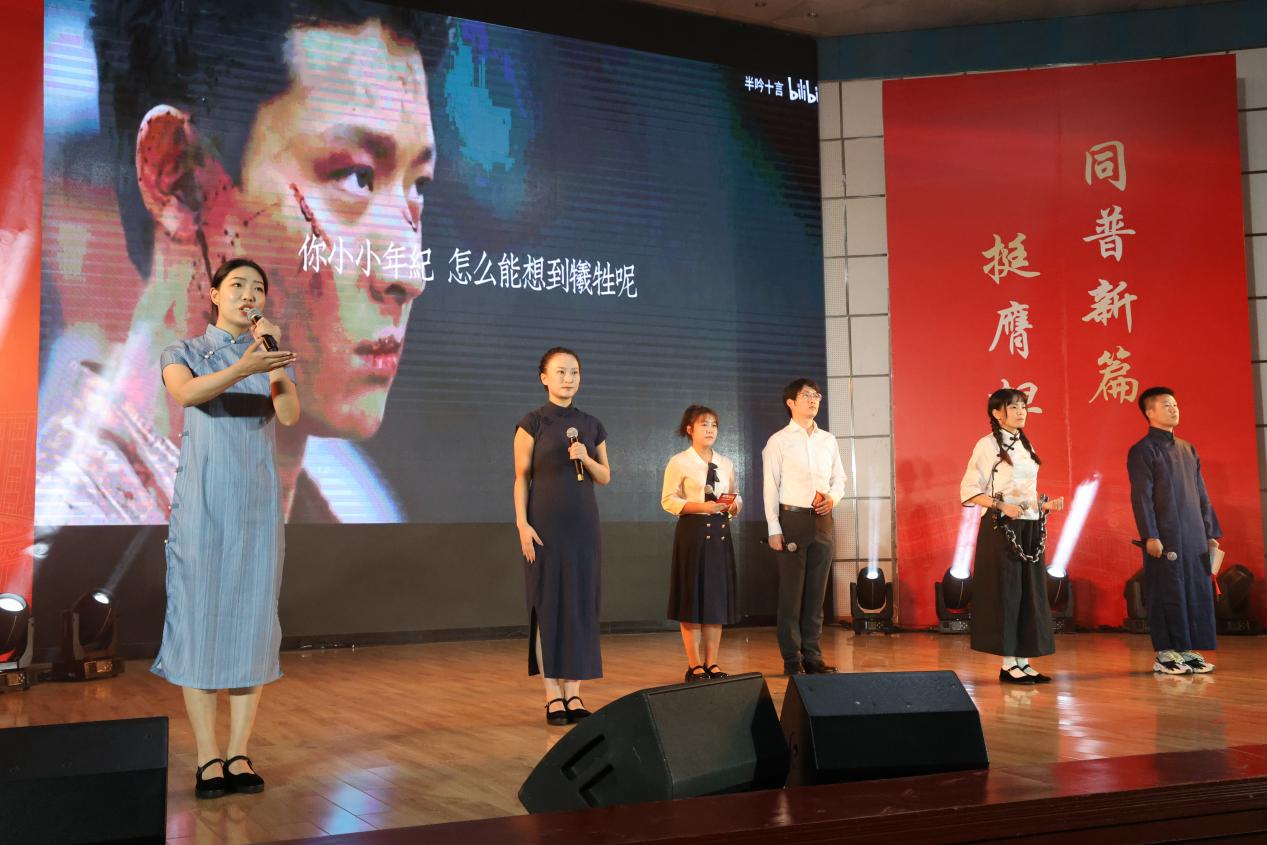 在朗诵环节,由文化艺术学院老师们朗诵的作品《这是一张张怎样的脸》,用深情的语调、真挚的情感向戍边军人致敬,展现了新时代中国共产党人精神,戍边军人的英勇与奉献,让在场的每一个人都深受感动。而由学生工作党支部的教师们带来的朗诵作品《觉醒年代·青春说》,以青年的视角回望历史,以激昂的朗诵风格,展现了青年一代对祖国的热爱和在时代变革中的力量与担当。