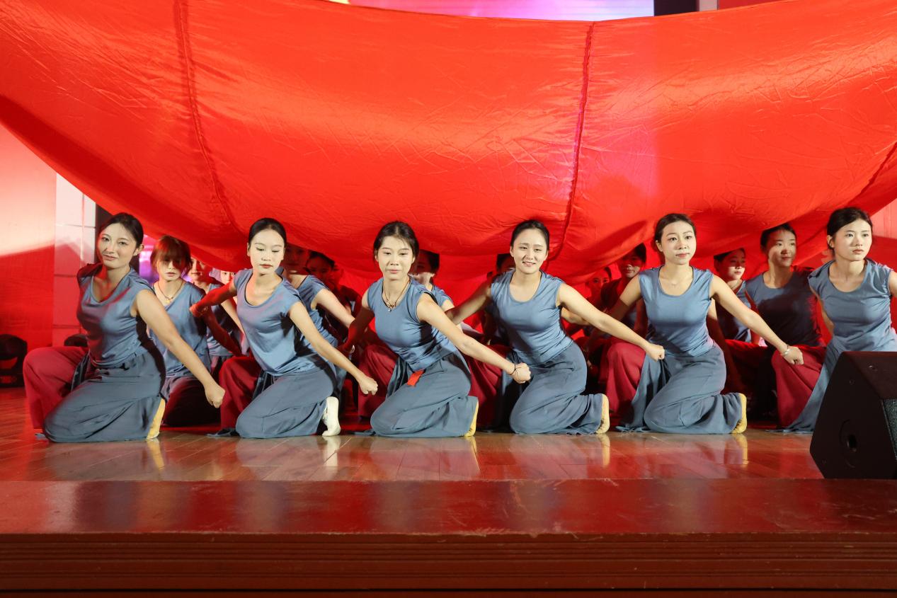 伴随着激昂的开场音乐,大学生艺术团以一支激情洋溢的舞蹈《我心中的红》拉开了序幕,舞者们手握鲜艳的红布,舞姿灵动而有力,以艺术的形式表达了“我心中的红”是迎风飘扬的红旗,是燎原的星星之火,是党不断从胜利走向胜利的强大精神支撑和宝贵精神财富,展现了当代大学生的蓬勃朝气与爱国情怀。
