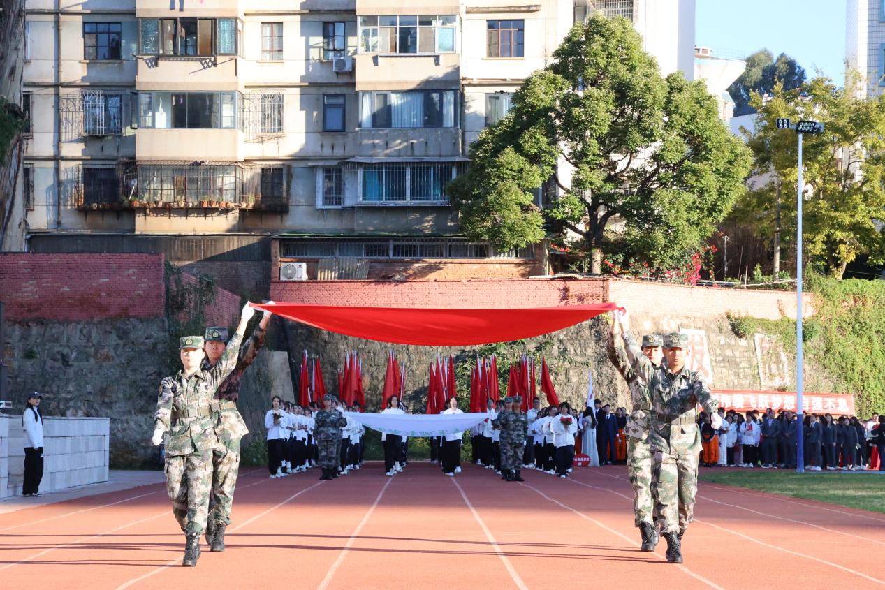啦啦操热情灵动的表演后,护旗手方队、校旗、红旗、鲜花方队,各二级学院运动员方队依次入场。每个方队的师生都身着统一队服,喊出专属口号,彰显拼搏向上的运动精神,展露百花齐放的青春色彩。