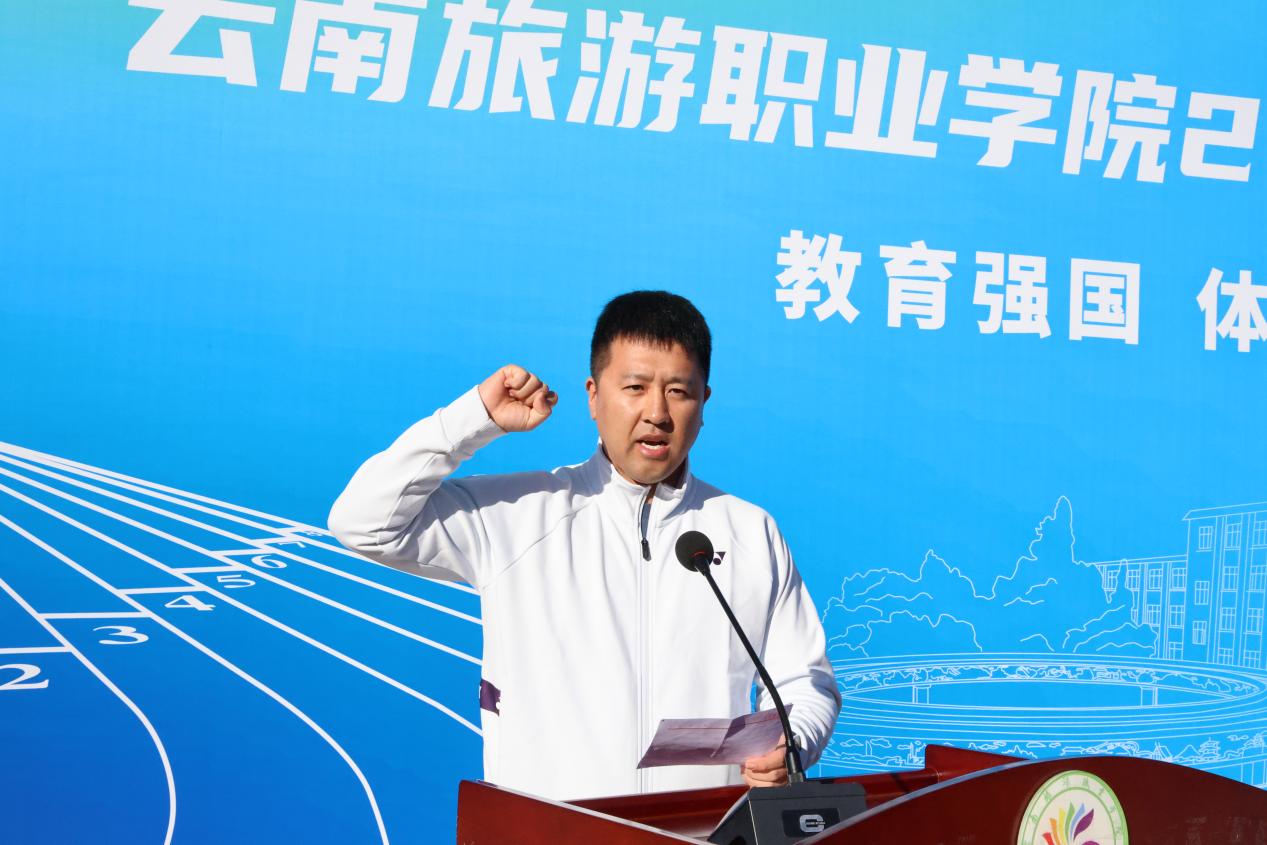 他指出,党的十八大以来,党中央高度关心和重视体育事业,多次强调加快建设体育强国。学院一年一度的田径运动会正是展现青年学生精神风貌、弘扬体育之美、贯彻习近平总书记关于体育强国战略思想的具体实践。多年来,学院紧紧围绕立德树人根本任务,坚持以习近平总书记关于教育的重要论述为指导,着眼于培养德智体美劳全面发展的社会主义建设者和接班人,扎实推进教育高质量发展,实施“体育浸润行动计划”,以体教融合为抓手,建立高素质体育专项教师队伍,打造校园体育精品赛事,让学生在体育强国建设中获得健康、汲取力量。
