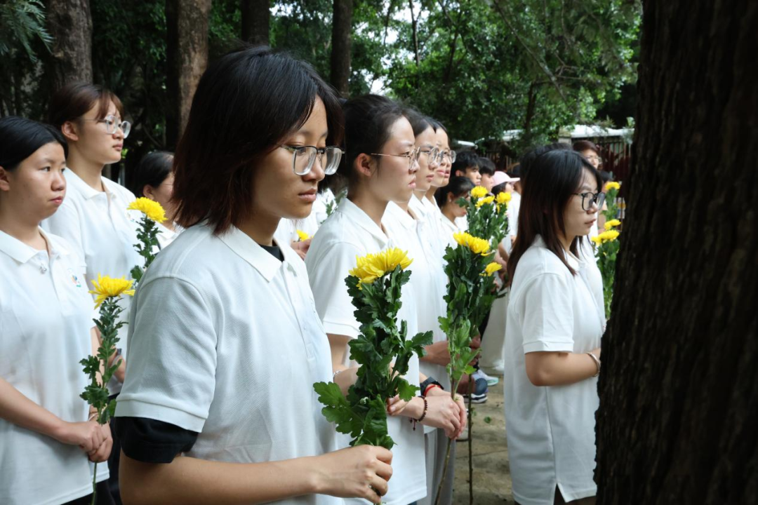 午后,师生们乘车前往禄劝县翠华乡普渡铁索桥,在红军墓前举行庄严的祭奠仪式,师生肃立默哀、敬献鲜花,并参观了普渡河铁索桥。通过思政课教师的现场教学,师生们深刻体会到革命胜利的来之不易,纷纷表示要珍惜当下,努力学习,报效祖国。