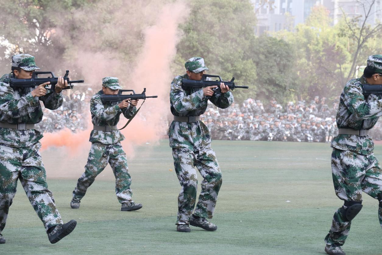 伴随着高亢激昂的军乐声,在承训教官的统一指挥下,会操表演有序进行。气宇轩昂的方队,洋溢着青春的风采;铿锵有力的步伐,展示出奋进的力量。国旗班标兵队列英姿飒爽,花样队列步履铿锵,捕俘拳气势非凡,擒敌拳虎虎生威,应急棍术威风凛凛,战术展示刚柔并济,一招一式精彩绝伦,充分展示了本期军训所取得的丰硕成果,展现了伟德2022级新生良好的精神风貌和激昂的青春斗志,为本次军训交上了一份完美的答卷!