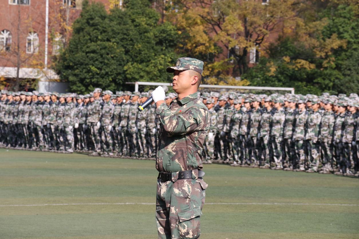 军训团团长董国霖同志代表参训教官发言,他勉励同学们把军人的过硬作风带到今后的学习和生活中,经受住困难和挫折的考验,练就强健的体魄,磨砺坚强的意志,培养坚韧不拔的精神,响应习近平总书记的号召,担当使命,创造更多的佳绩,为实现第二个百年奋斗目标和中华民族伟大复兴贡献青春力量。