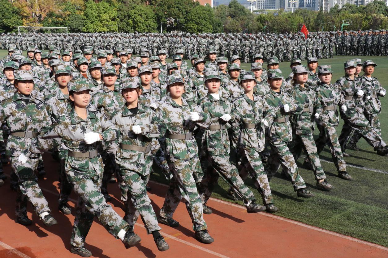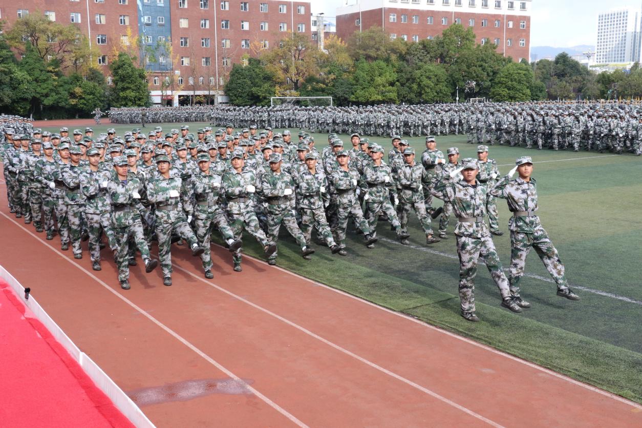 “一!二!三!四!”,嘹亮的口号响彻云霄,11支方阵队列迈着整齐的步伐,以饱满的热情一一通过主席台,天高云阔、军姿威武,红旗招展、口号阵阵,仿如“沙场秋点兵”的豪壮气势,展现出云旅学子英姿飒爽、意气风发、自强不息的精神状态。