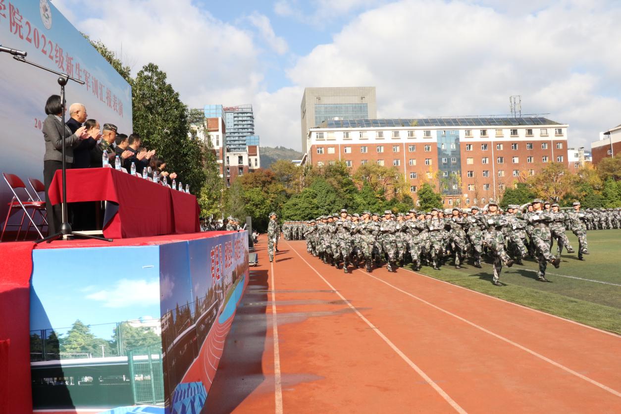 11月6日上午10点,2022级新生军训汇演暨总结表彰大会在高新教学实训基地田径运动场举行。学校领导,办公室、宣传部、学工部(武装部)、团委负责人,各二级学院党支部书记、院长,全体辅导员以及全体新生班主任参加大会。副校长杨红英主持大会。