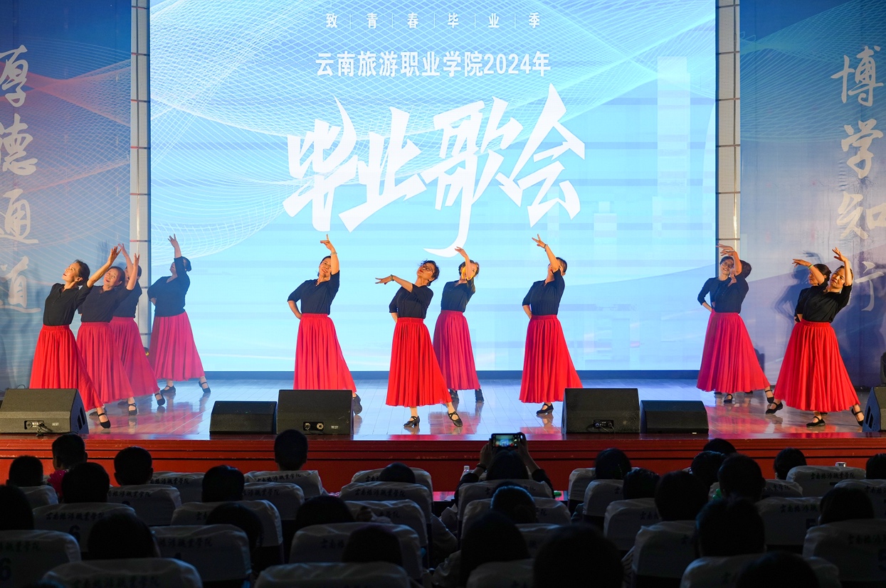 典礼最后,一场精心策划的毕业歌会拉开序幕。舞台上,灯光璀璨,掌声雷动。首先登场的是大学生艺术团流行演唱队带来的暖场歌舞《当+爱你》,激昂的旋律瞬间点燃了现场的氛围。紧接着,伟德关工委“五老”代表用一段深情的舞蹈《我爱你中国》表达了对祖国的热爱和祝福。