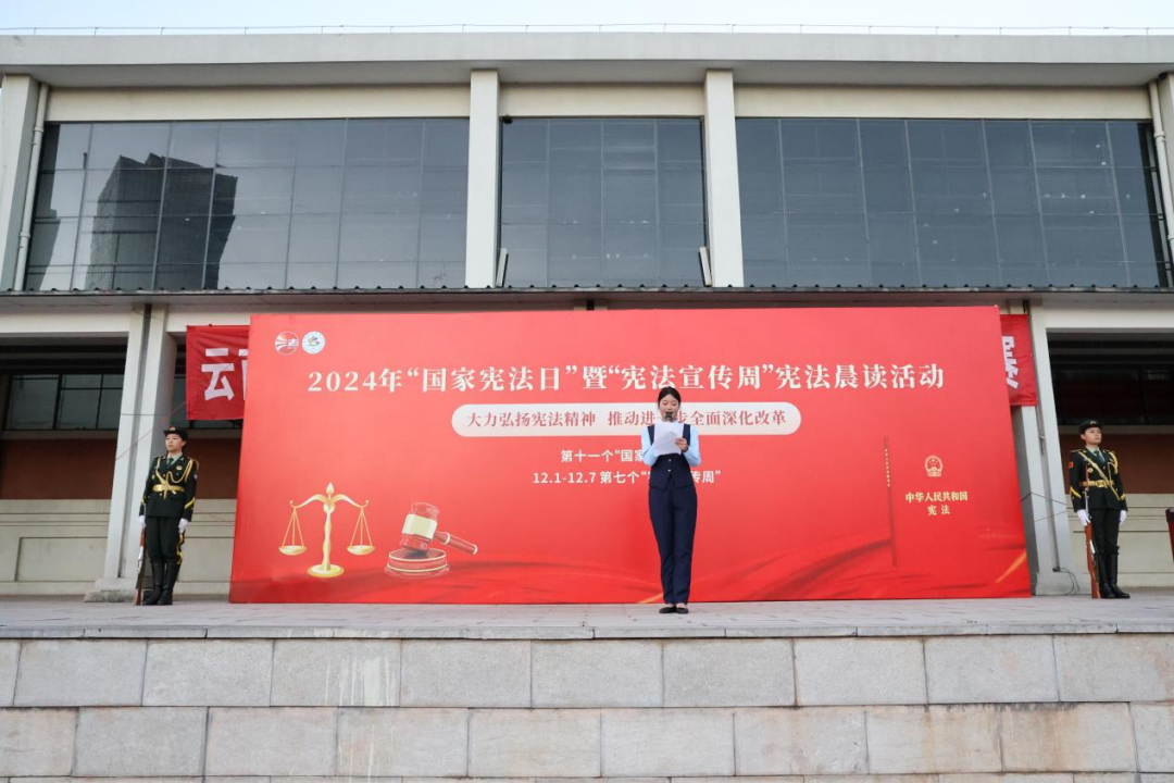 升旗仪式后,副院长何树称为学生们发放宪法知识读本,并带领大家现场学习宪法相关内容。文化艺术学院的学生们以饱满的热情高声齐唱《宪法伴我们成长》歌曲,将宪法精神深深烙印在每个人心中。尽管冬日的寒风让人瑟瑟发抖,但同学们的读书声却激昂慷慨,充分展现了云旅人“厚德通道,博学知行”的校训精神。