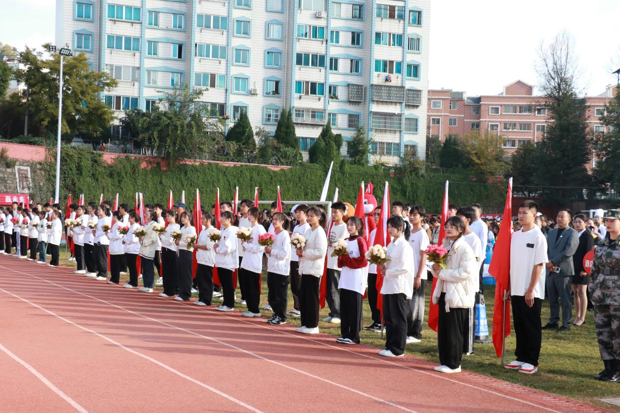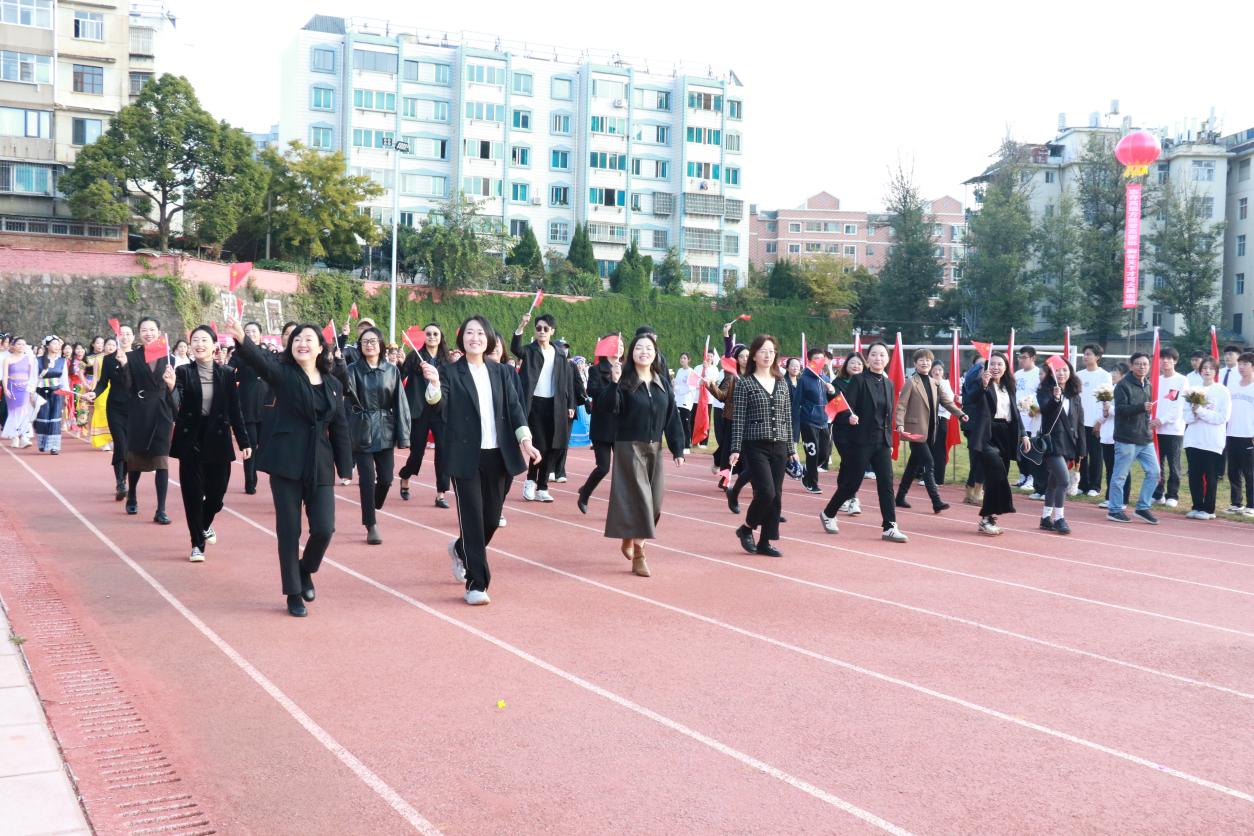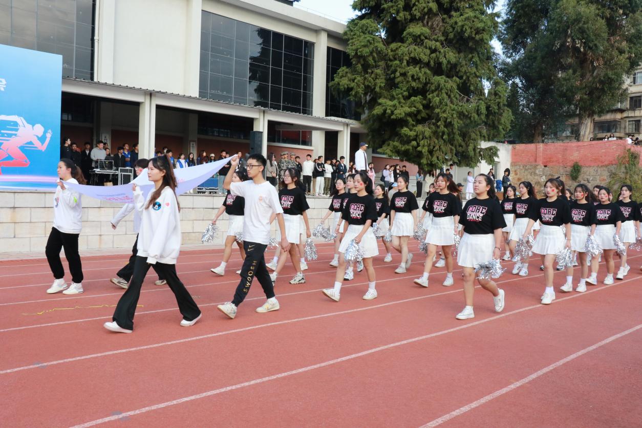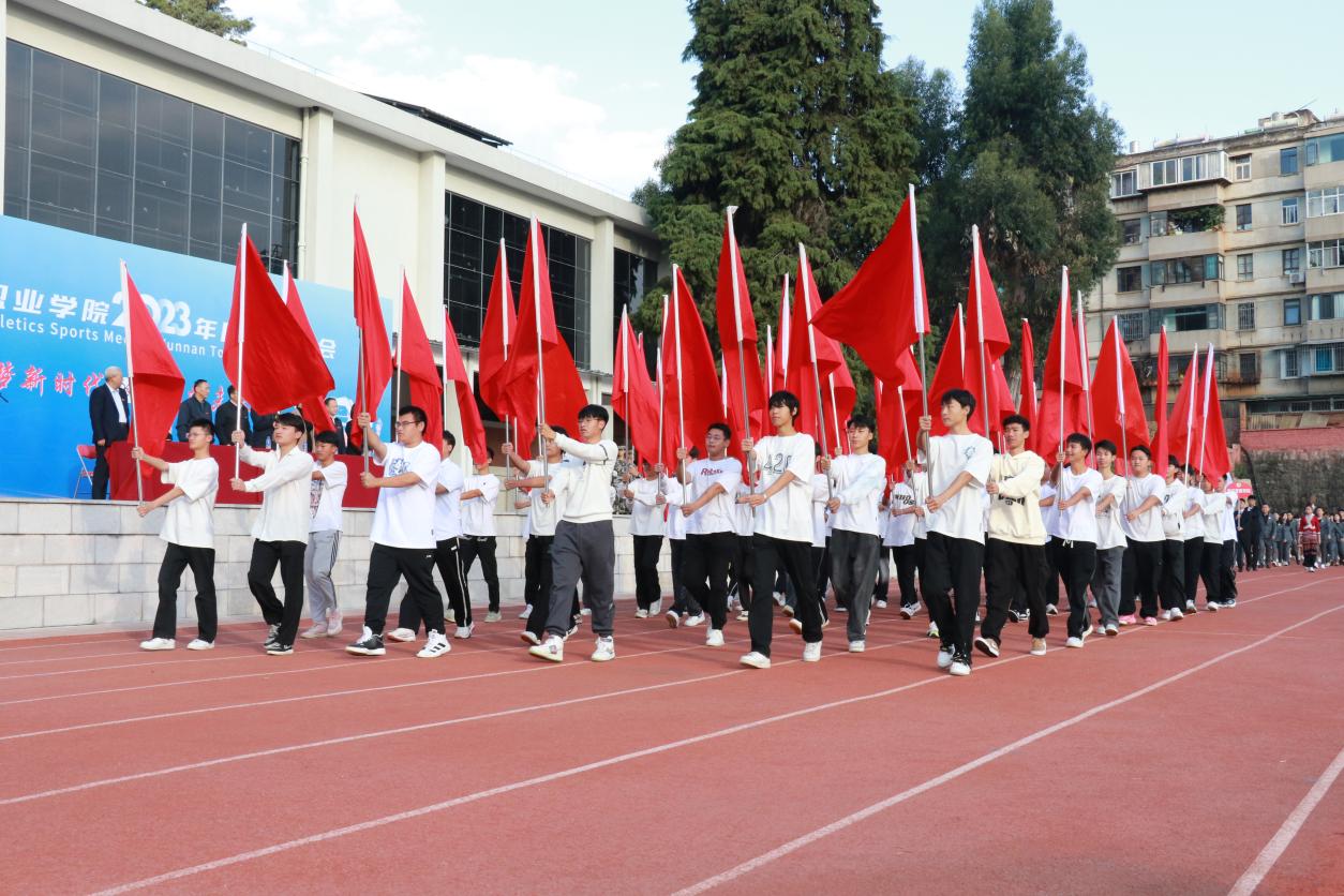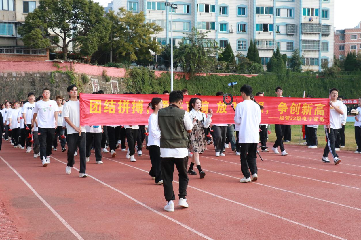 开幕式上,伴随着激昂奋进的《运动员进行曲》,步伐矫健的旗手护卫着鲜艳的五星红旗首先入场。踏着铿锵的步伐,校旗、红旗、鲜花方队,各二级学院运动员方队,教职工、裁判员方队依次入场。