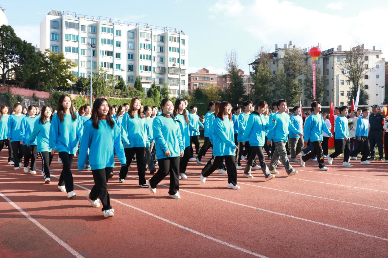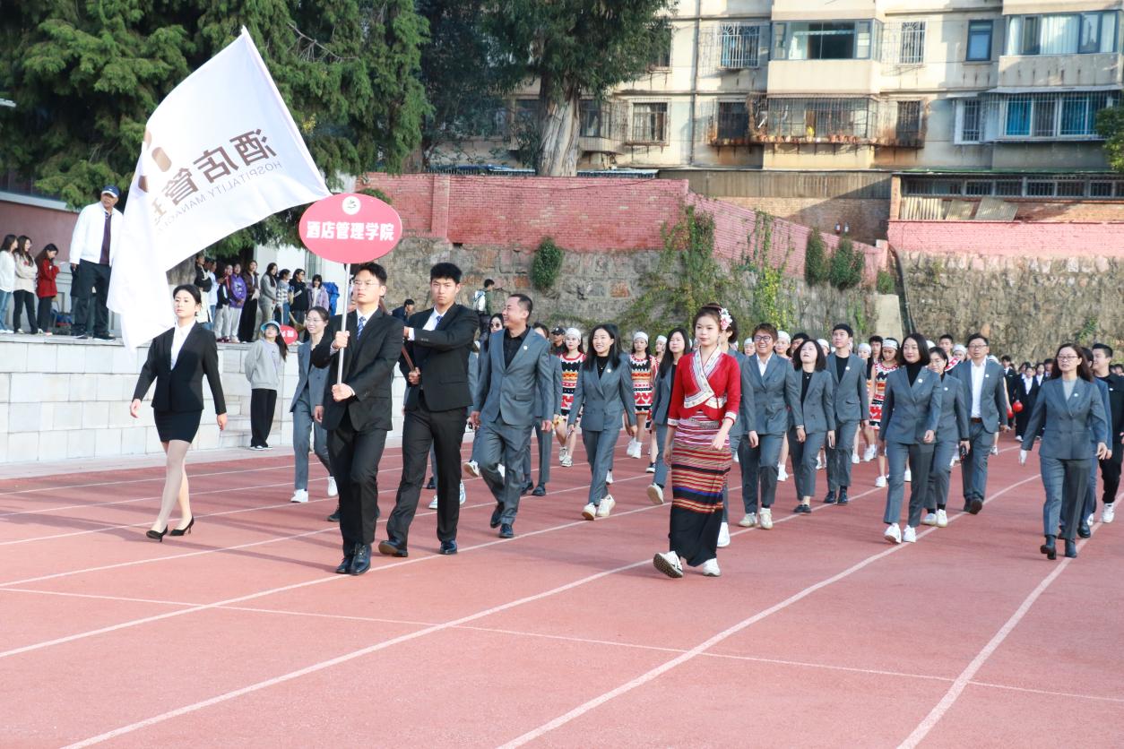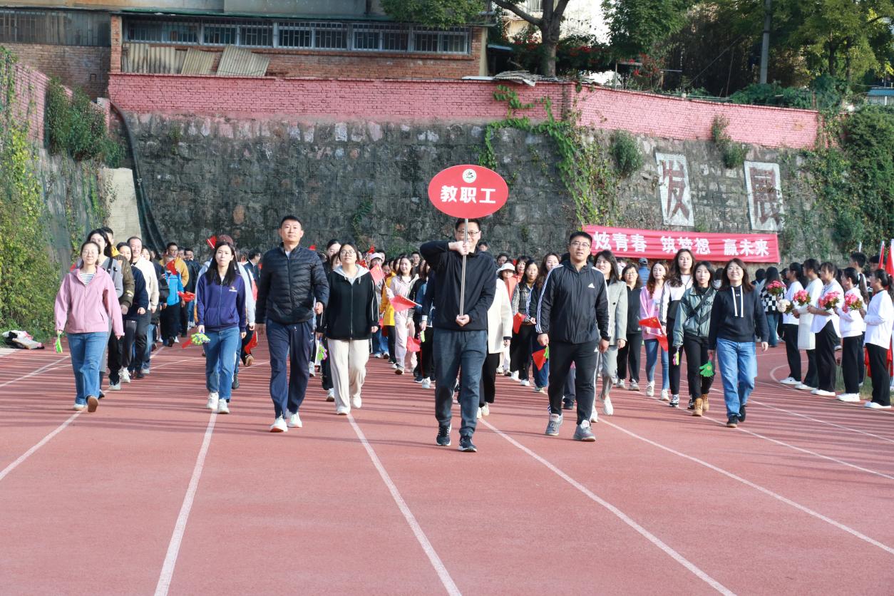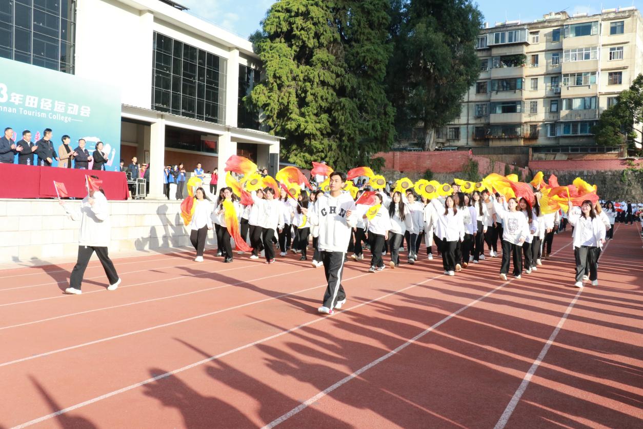 开幕式上,伴随着激昂奋进的《运动员进行曲》,步伐矫健的旗手护卫着鲜艳的五星红旗首先入场。踏着铿锵的步伐,校旗、红旗、鲜花方队,各二级学院运动员方队,教职工、裁判员方队依次入场。