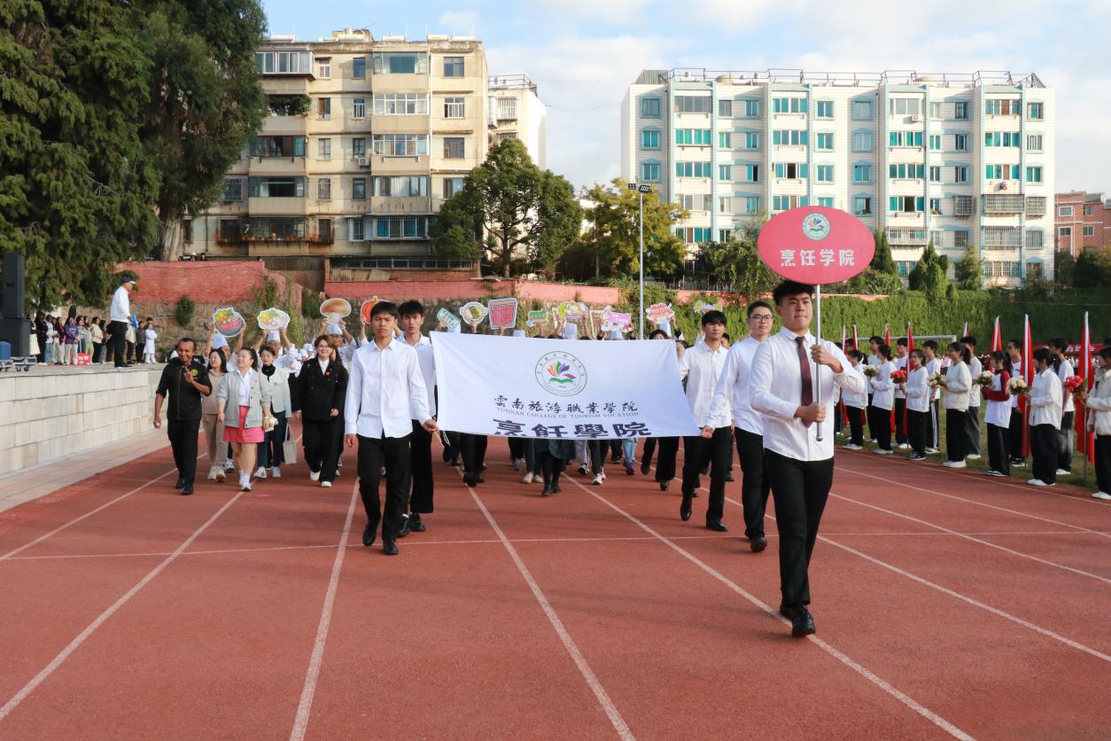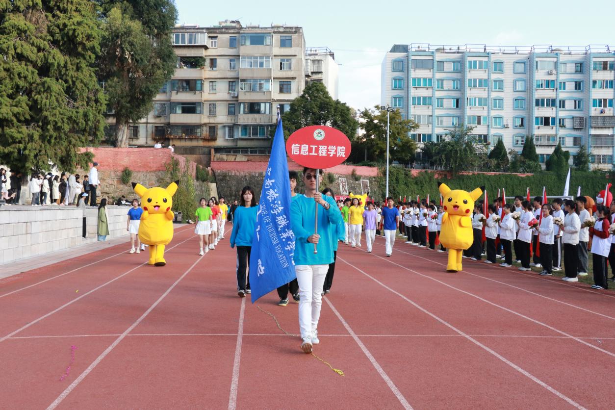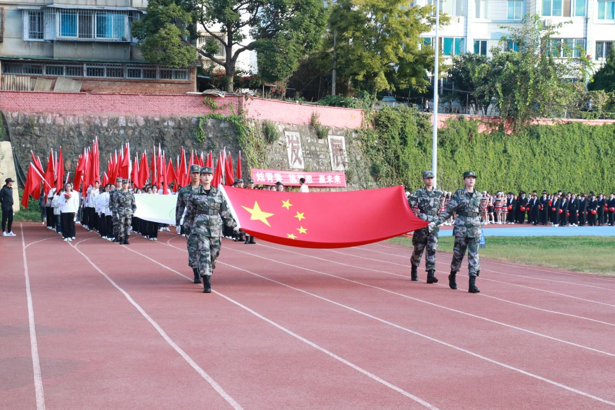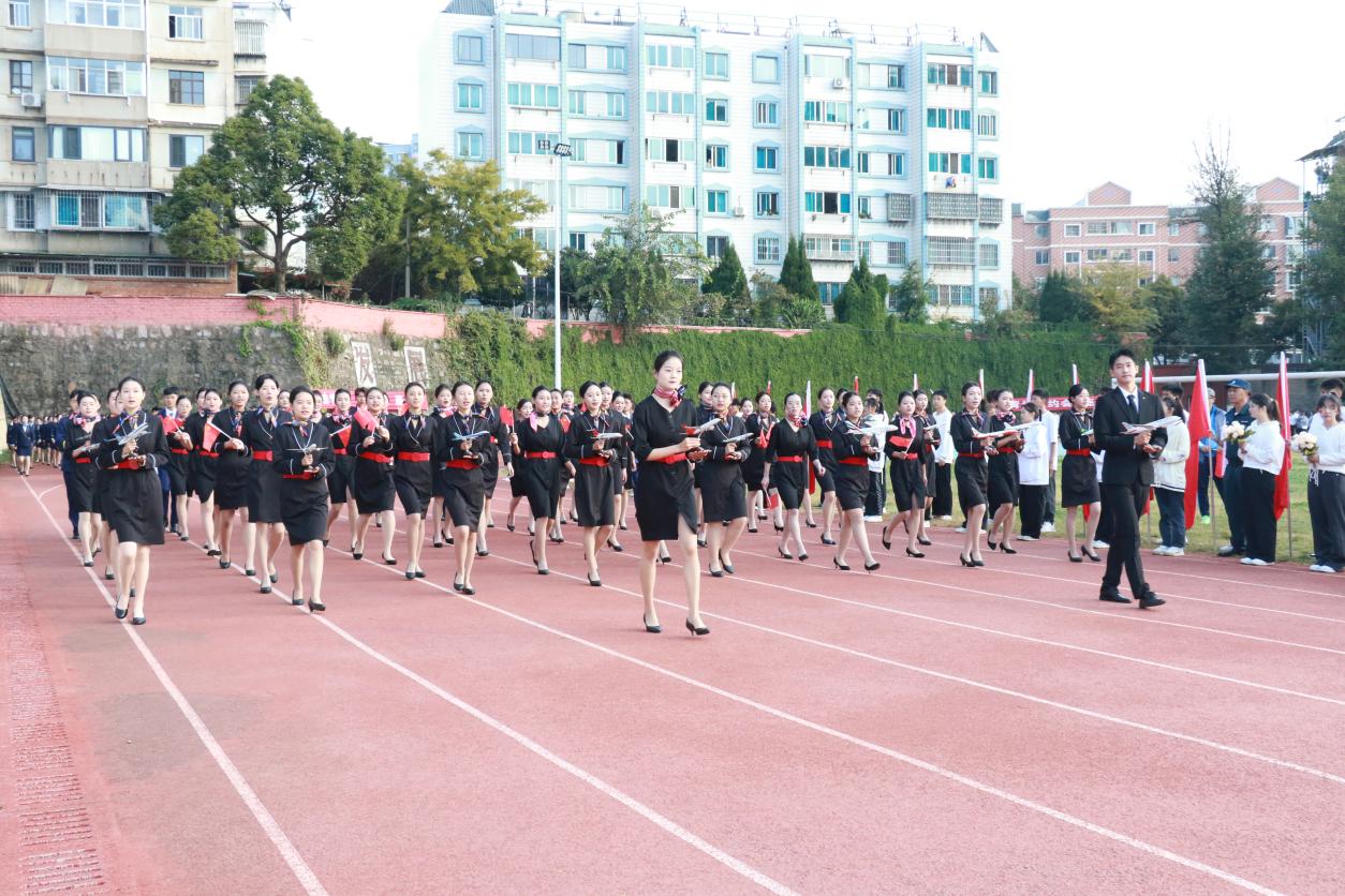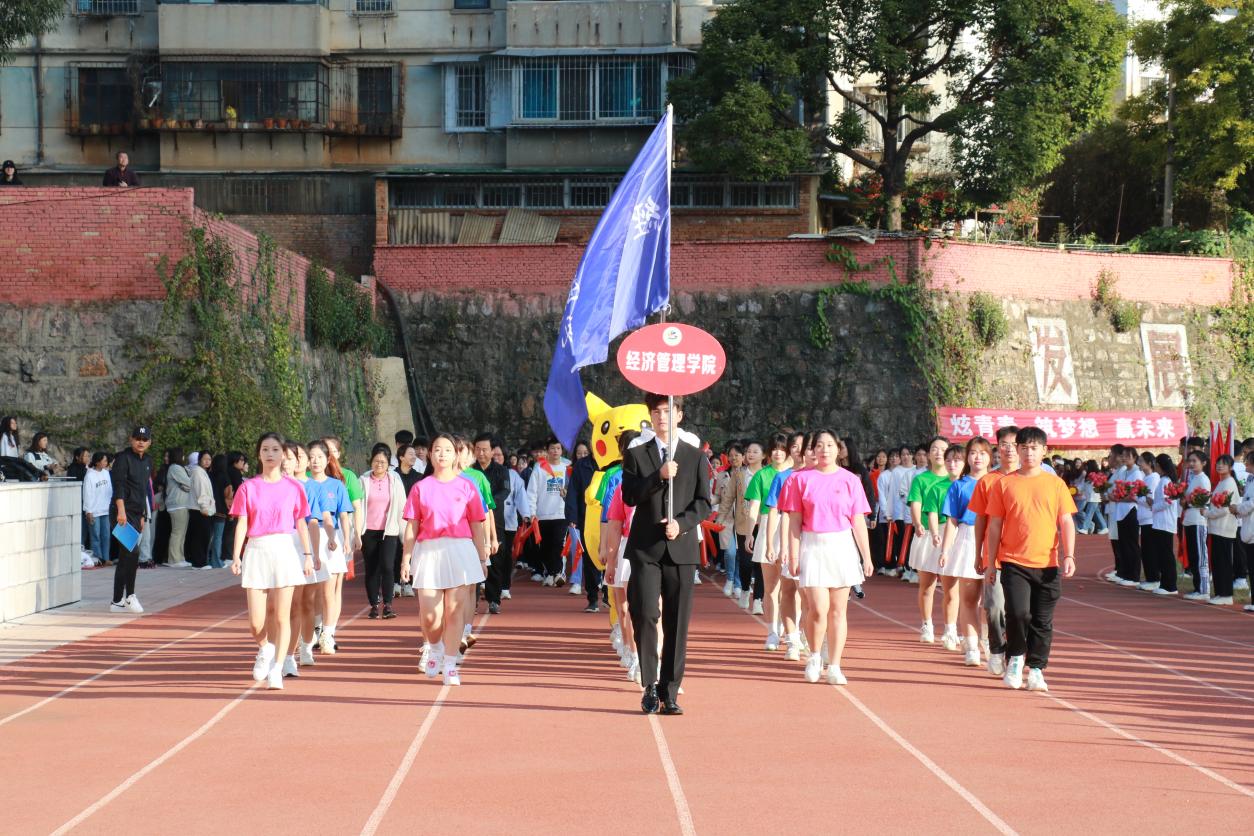 开幕式上,伴随着激昂奋进的《运动员进行曲》,步伐矫健的旗手护卫着鲜艳的五星红旗首先入场。踏着铿锵的步伐,校旗、红旗、鲜花方队,各二级学院运动员方队,教职工、裁判员方队依次入场。