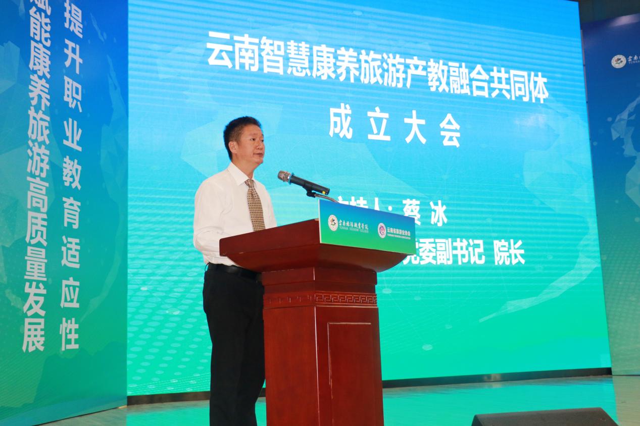 4月28日下午,云南智慧康养旅游产教融合共同体成立大会在bevictor伟德国际1946官网成功举行。大会由学院党委副书记、院长蔡冰主持。
