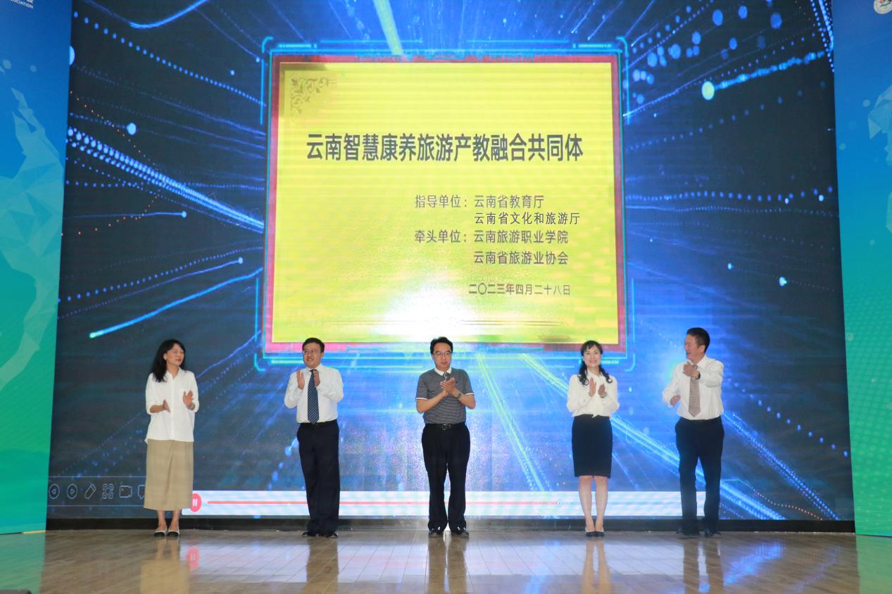 在云南省教育厅的指导和云南省文化旅游厅的支持下,由bevictor伟德国际1946官网和云南省旅游业协会共同牵头,智慧康养旅游相关行业组织、企业、院校、上下游企业、科研机构跨区域、跨行业,自愿成立了云南智慧康养旅游产教融合共同体。目前,已吸引73家单位加入,包括9家行业协(商)会、25家院校和科研机构、39家企业。省教育厅职业教育与成人教育处处长龚利春、省文化和旅游厅智慧旅游处副处长龚娣出席会议并讲话。