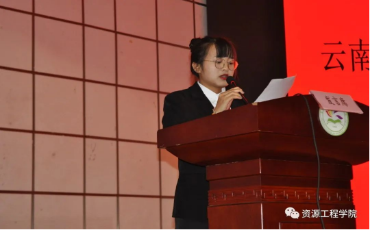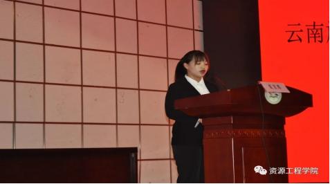 2.校学生会主席团成员王安涛以致辞、资源工程学院学生会主席团成员柳月娟汇报工作