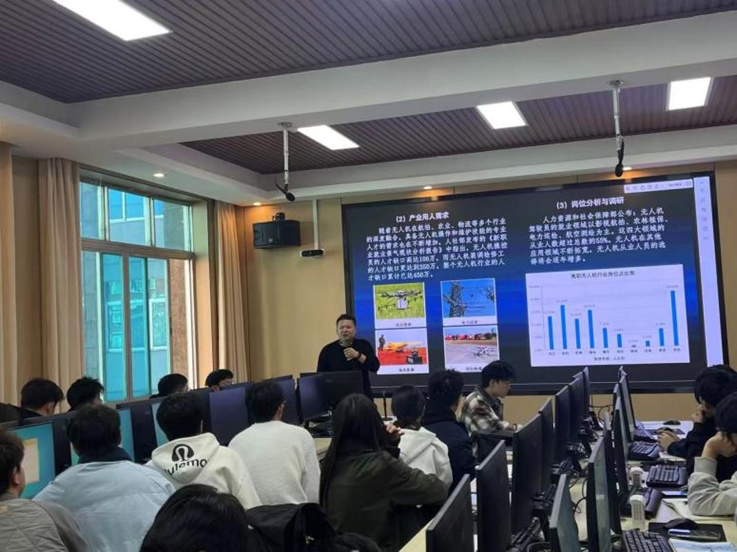 针对师生关注的职业资格认证热点,彭超详细解读了无人机执照相关政策。互动环节中,同学们围绕技术学习路径、执照报考条件等问题积极提问,彭超逐一耐心解答,现场交流氛围热烈。